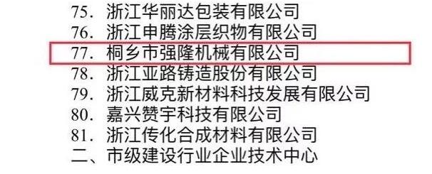 Jiaxing Municipal People's Government Office påpegede klart, at for yderligere at implementere den innovationsdrevne udviklingsstrategi, styrke konstruktionen af virksomhedens teknologiske innovationssystemer, forbedre virksomhedernes teknologiske innovationsevner og -niveauer og fremme økonomisk transformation og opgradering. Derfor har Jiaxing Municipal People's Government vurderet 84 virksomheder som 2017 Jiaxing Municipal Enterprise Technology Center. Det er en ære, at vores virksomhed-Tongxiang Qianglong Machinery Co., Ltd. er på listen.